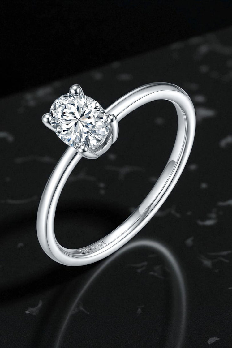 A timeless and elegant choice, this solitaire engagement ring features a brilliant oval-cut diamond set in a secure four-prong design. The polished sterling silver band enhances the stone’s natural sparkle, offering a sleek and modern finish. Customers can also request this design in gold or platinum for a personalized and luxurious touch.