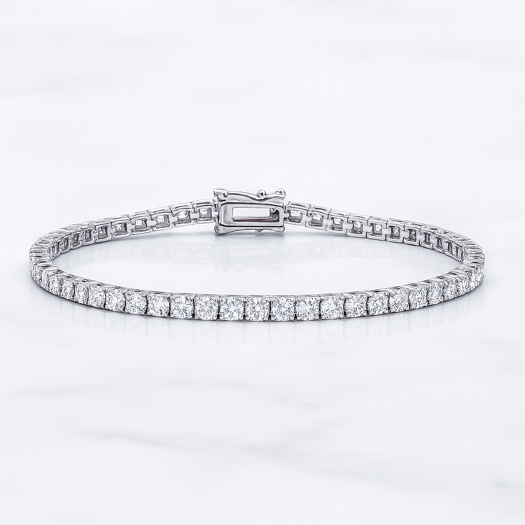 An icon of timeless beauty, the Lumière Tennis Bracelet features a seamless row of hand-set moissanite stones that radiate brilliance from every angle. Crafted in luminous white gold or silver, this bracelet is the epitome of modern luxury designed to elevate any look, day or night.
